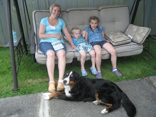So the kids are out there swimming in the pool that we just filled from the hose. Nick's lips are blue and he can't stop shivering, but he doesn't want to get out : ).